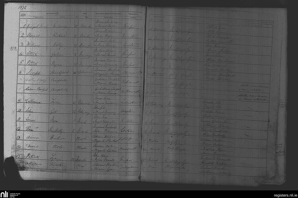 Milltown; County of Westmeath; Diocese of Meath. Baptisms, Dec. 1872 to May 1873