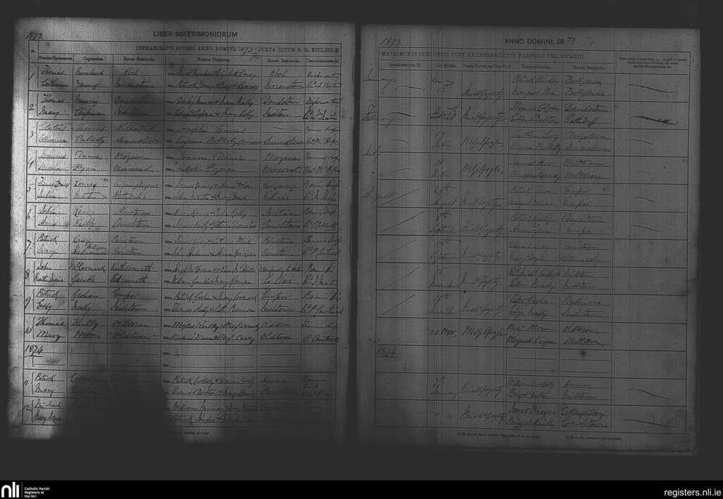Milltown; County of Westmeath; Diocese of Meath. Marriages, Jan. 1873 to Jan. 1874