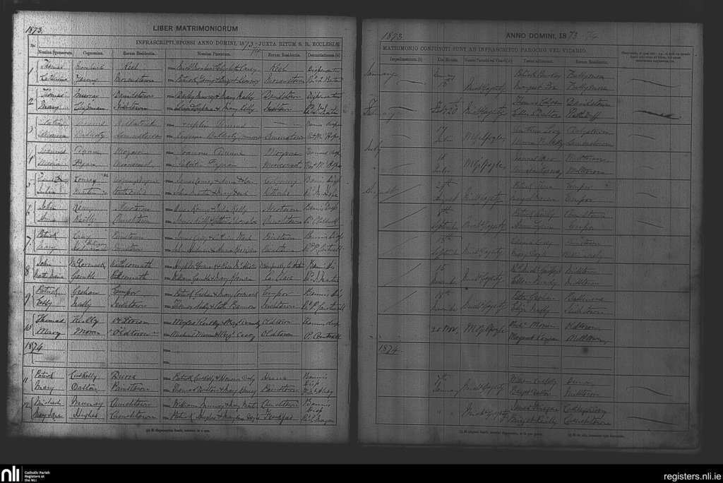Milltown; County of Westmeath; Diocese of Meath. Marriages, Jan. 1873 to Jan. 1874