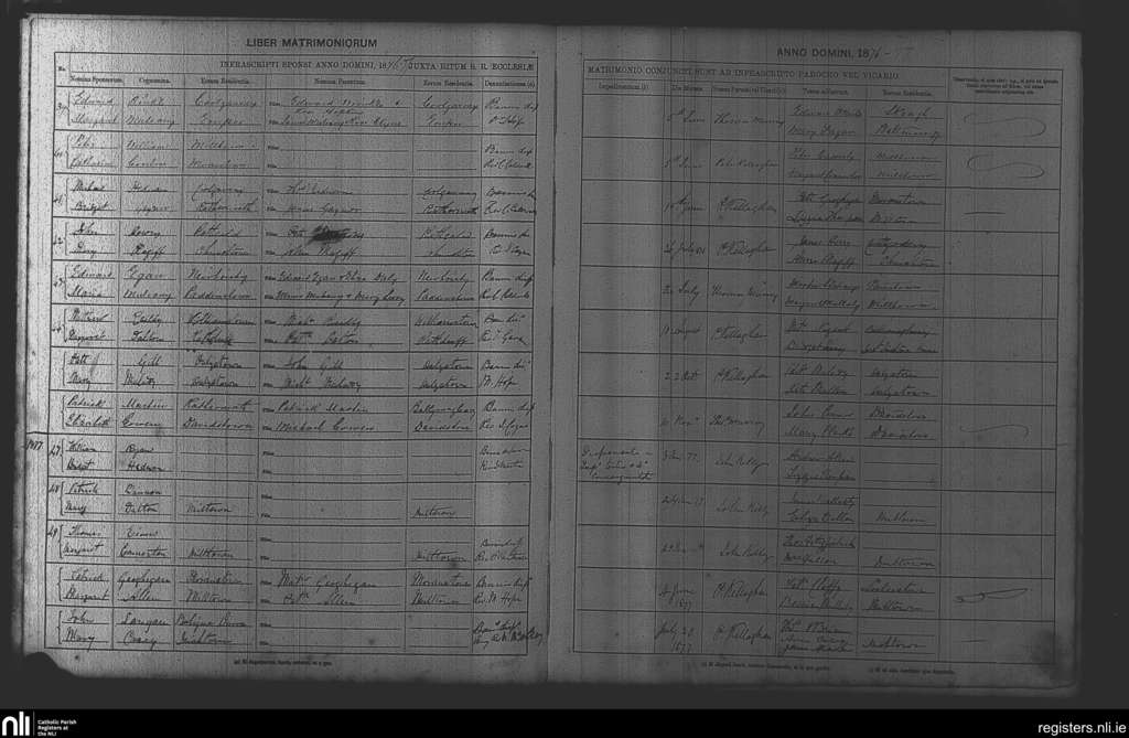 Milltown; County of Westmeath; Diocese of Meath. Marriages, June 1876 to July 1877