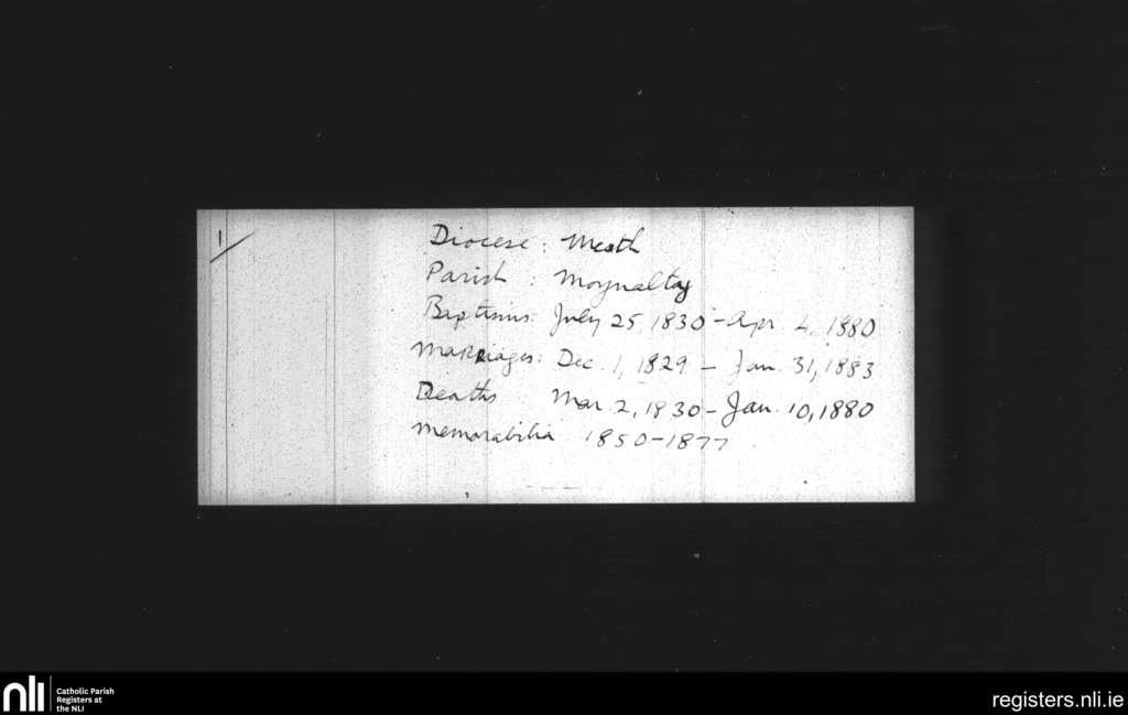 Moynalty; County of Meath; Diocese of Meath. Baptisms, Marriages, Deaths, Memorabilia