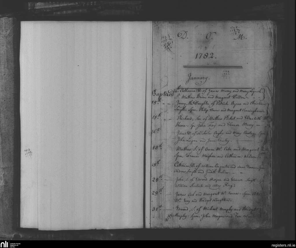 Navan; County of Meath; Diocese of Meath. Baptisms, Jan. 1782