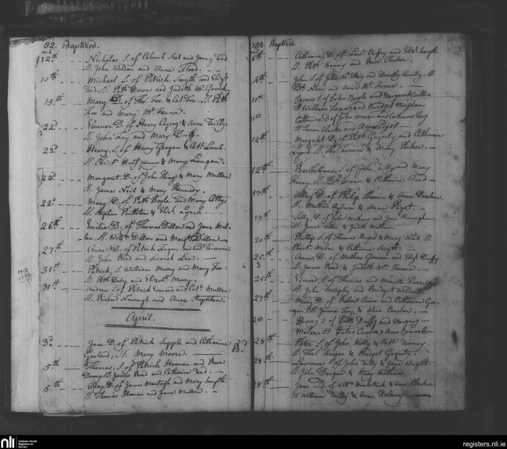 Navan; County of Meath; Diocese of Meath. Baptisms, Mar. 1782 to Apr. 1782