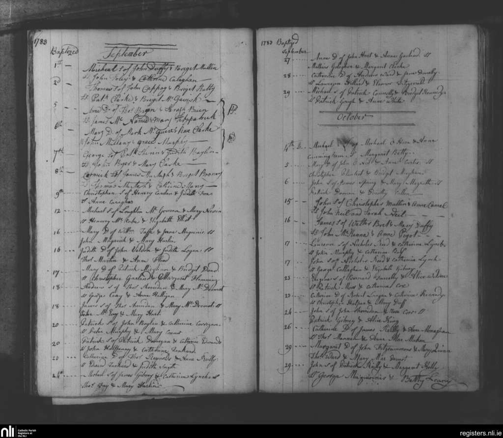 Navan; County of Meath; Diocese of Meath. Baptisms, Sep. 1783 to Oct. 1783