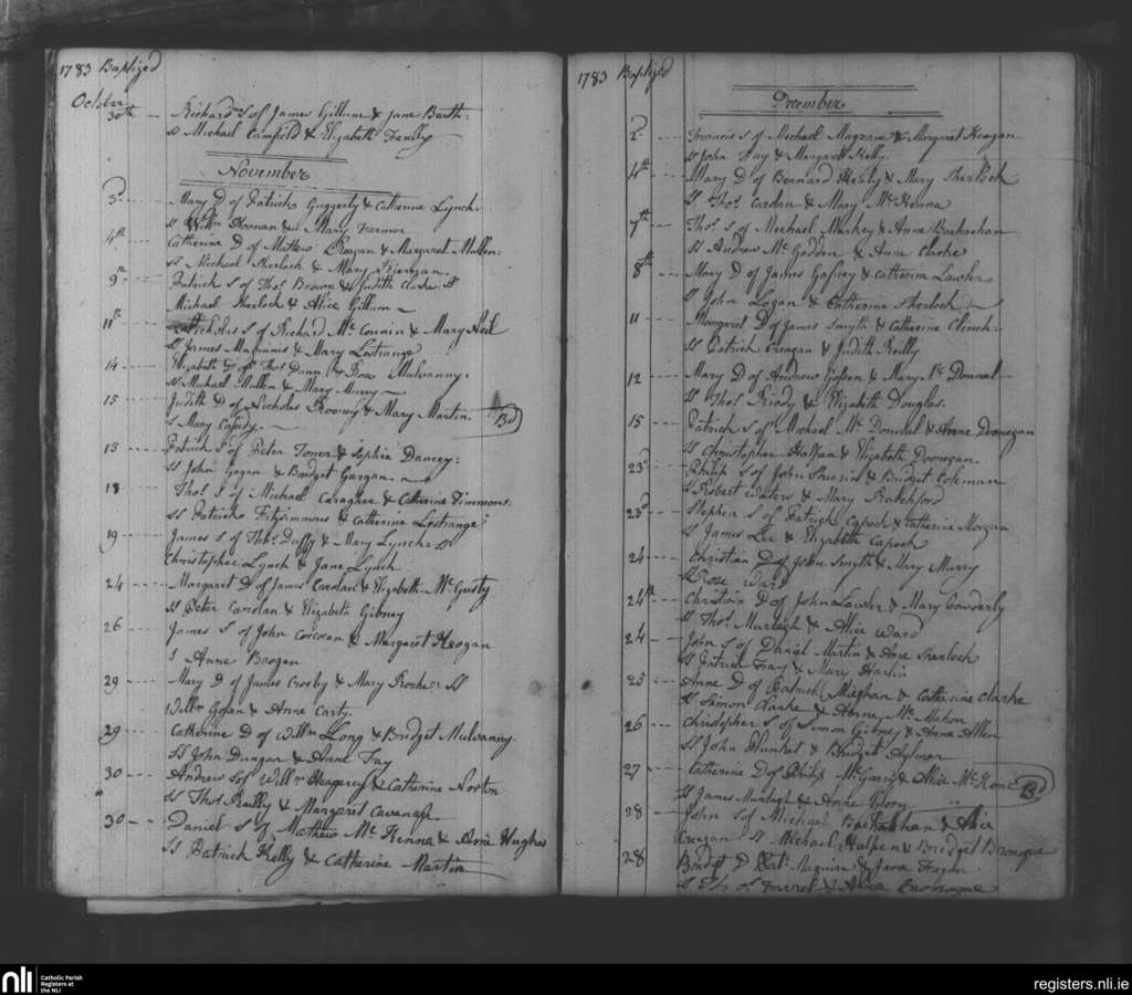 Navan; County of Meath; Diocese of Meath. Baptisms, Oct. 1783 to Dec. 1783