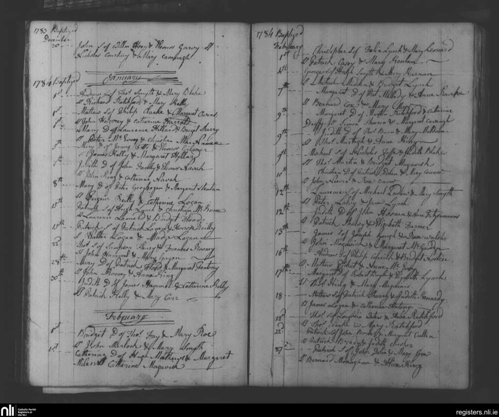 Navan; County of Meath; Diocese of Meath. Baptisms, Dec. 1783 to Feb. 1784