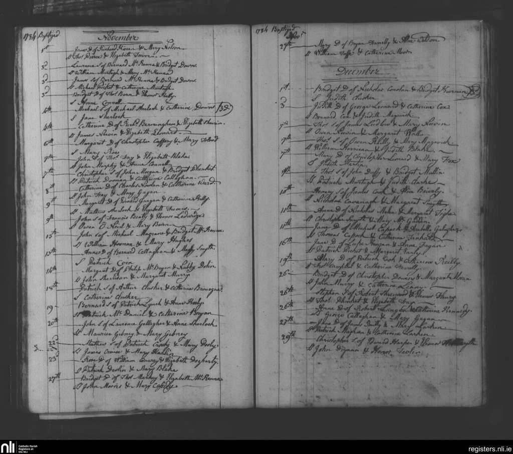 Navan; County of Meath; Diocese of Meath. Baptisms, Nov. 1784 to Dec. 1784