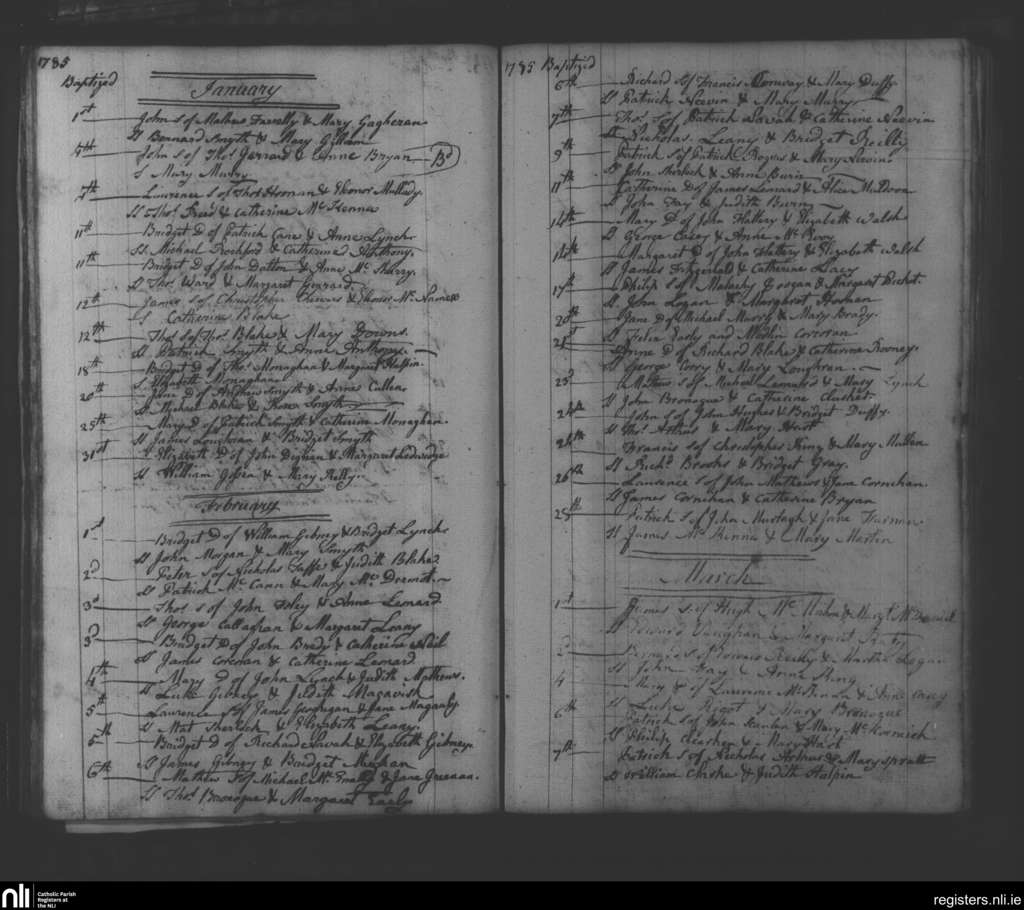 Navan; County of Meath; Diocese of Meath. Baptisms, Jan. 1785 to Mar. 1785
