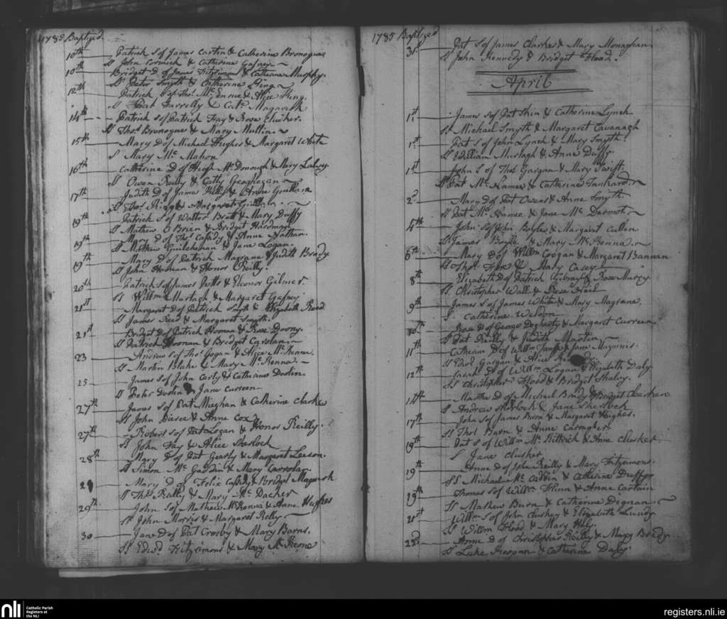 Navan; County of Meath; Diocese of Meath. Baptisms, Mar. 1785 to Apr. 1785