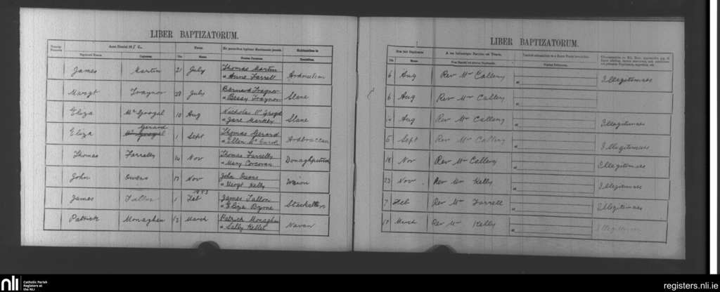 Navan; County of Meath; Diocese of Meath. Baptisms, Aug. 1852 to Mar. 1853