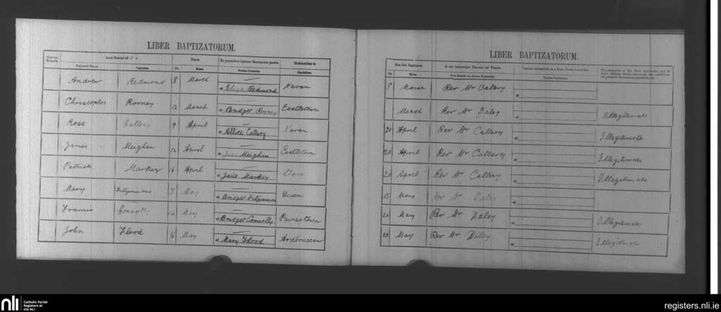 Navan; County of Meath; Diocese of Meath. Baptisms, Mar. 1854 to May 1854