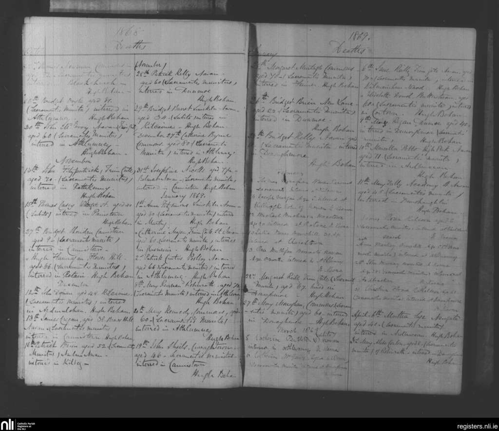 Navan; County of Meath; Diocese of Meath. Deaths, Oct. 1868 to Apr. 1869