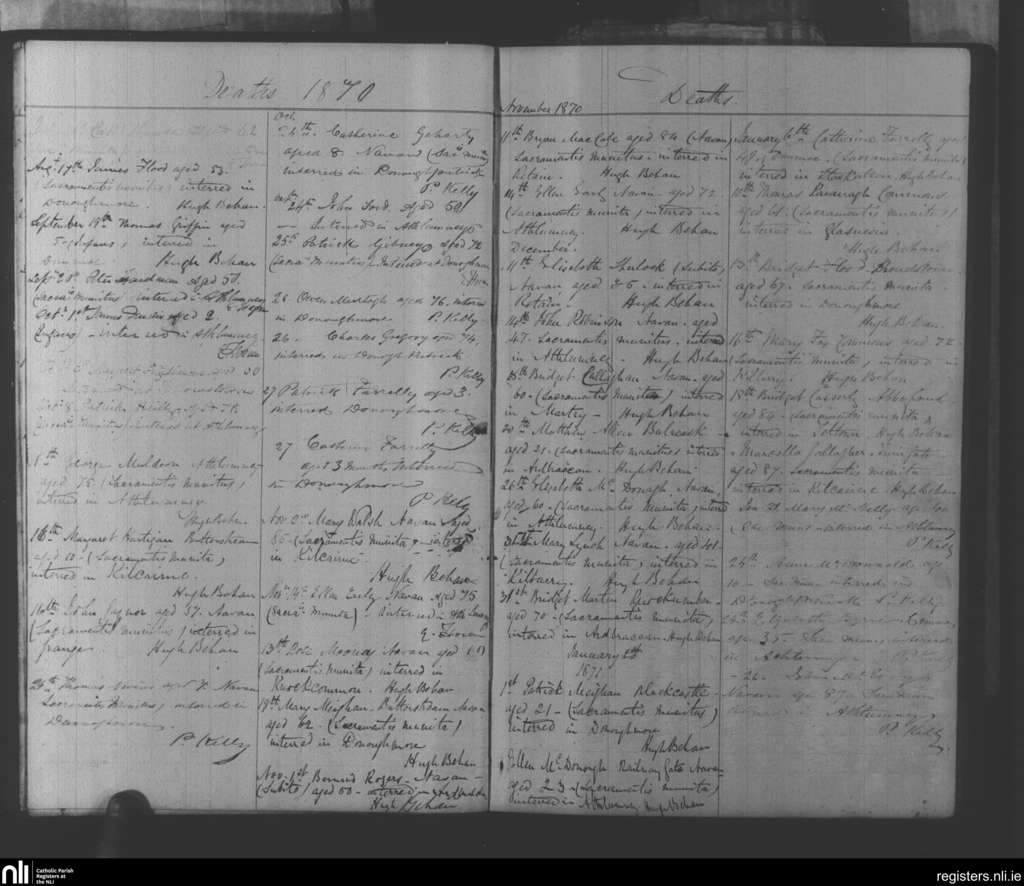 Navan; County of Meath; Diocese of Meath. Deaths, July 1870 to Jan. 1871