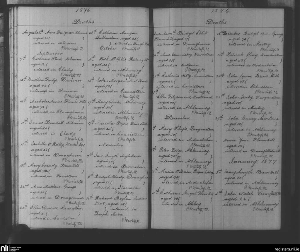 Navan; County of Meath; Diocese of Meath. Deaths, Aug. 1876 to Jan. 1877
