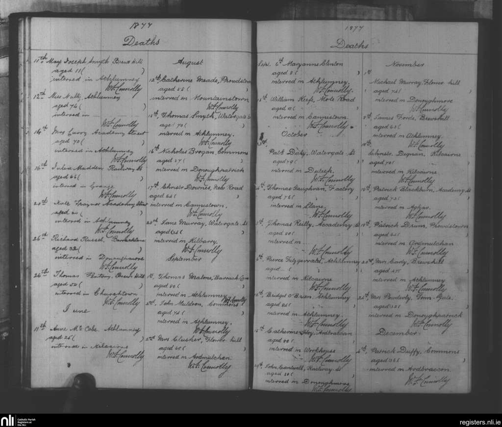 Navan; County of Meath; Diocese of Meath. Deaths, May 1877 to Dec. 1877