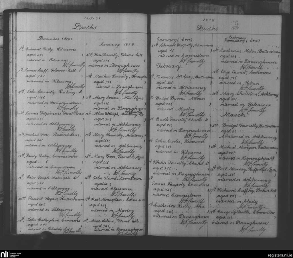 Navan; County of Meath; Diocese of Meath. Deaths, Dec. 1877 to Mar. 1878