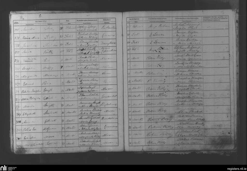Navan; County of Meath; Diocese of Meath. Baptisms, Feb. 1871 to Mar. 1871