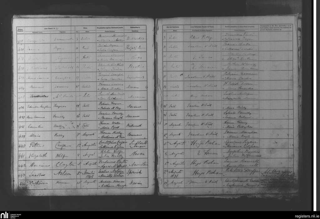 Navan; County of Meath; Diocese of Meath. Baptisms, July 1871 to Aug. 1871
