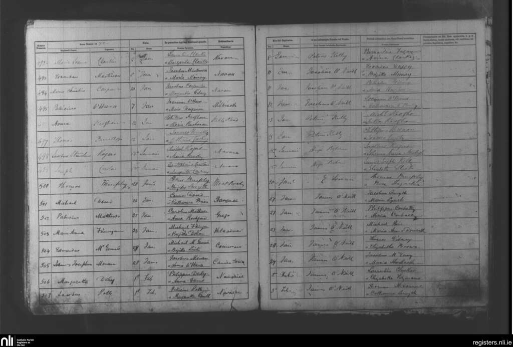 Navan; County of Meath; Diocese of Meath. Baptisms, Jan. 1872 to Feb. 1872