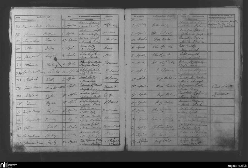 Navan; County of Meath; Diocese of Meath. Baptisms, Apr. 1873