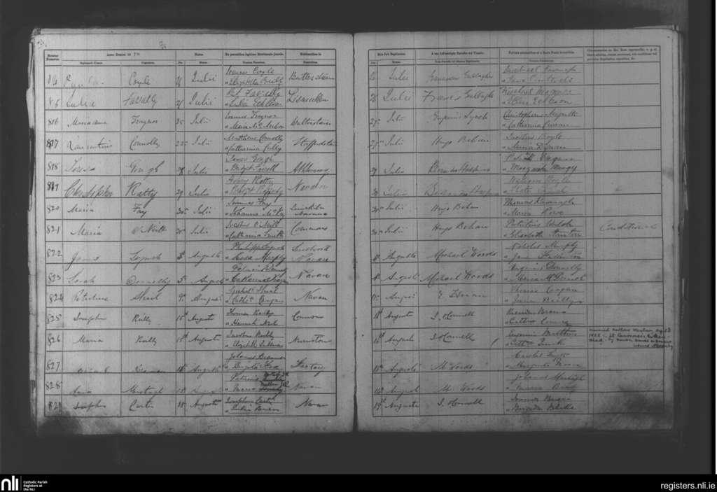 Navan; County of Meath; Diocese of Meath. Baptisms, July 1873 to Aug. 1873