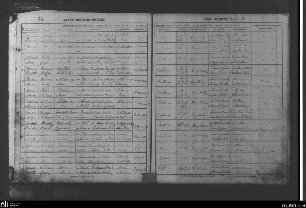 Navan; County of Meath; Diocese of Meath. Marriages, Oct. 1868 to Apr. 1869