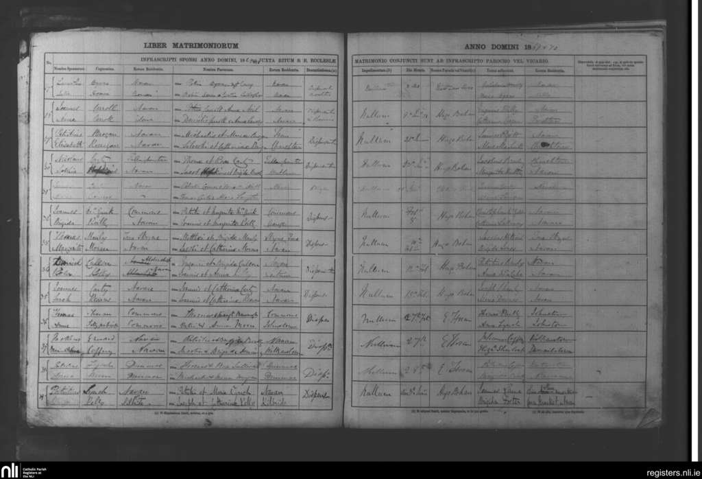 Navan; County of Meath; Diocese of Meath. Marriages, Dec. 1869 to June 1870