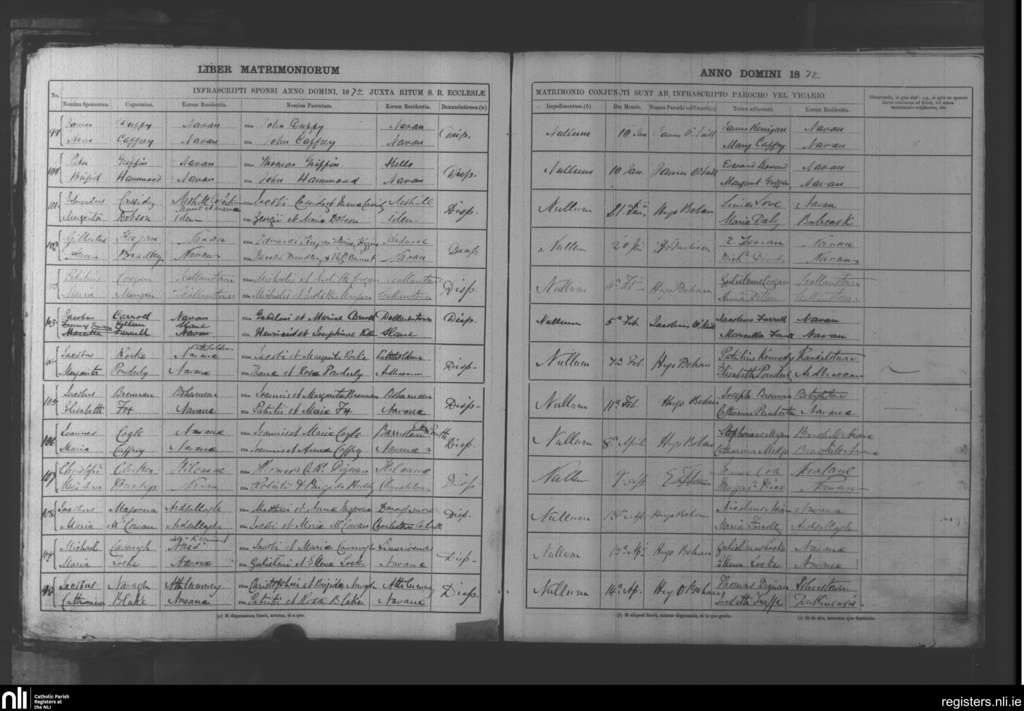 Navan; County of Meath; Diocese of Meath. Marriages, Jan. 1872 to Apr. 1872