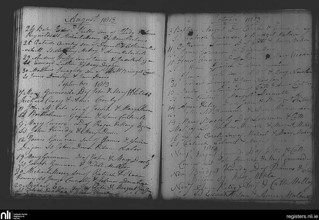 Rahan and Lynally; County of Offaly; Diocese of Meath. Baptisms, Aug. 1813 to Nov. 1813