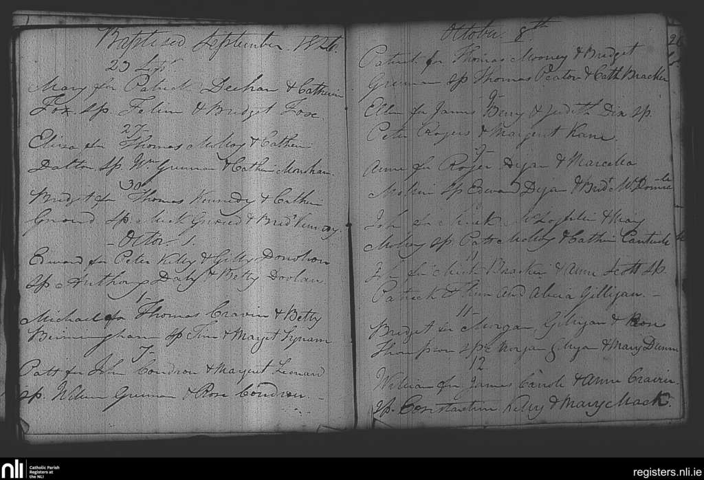 Rahan and Lynally; County of Offaly; Diocese of Meath. Baptisms, Sep. 1826 to Oct. 1826