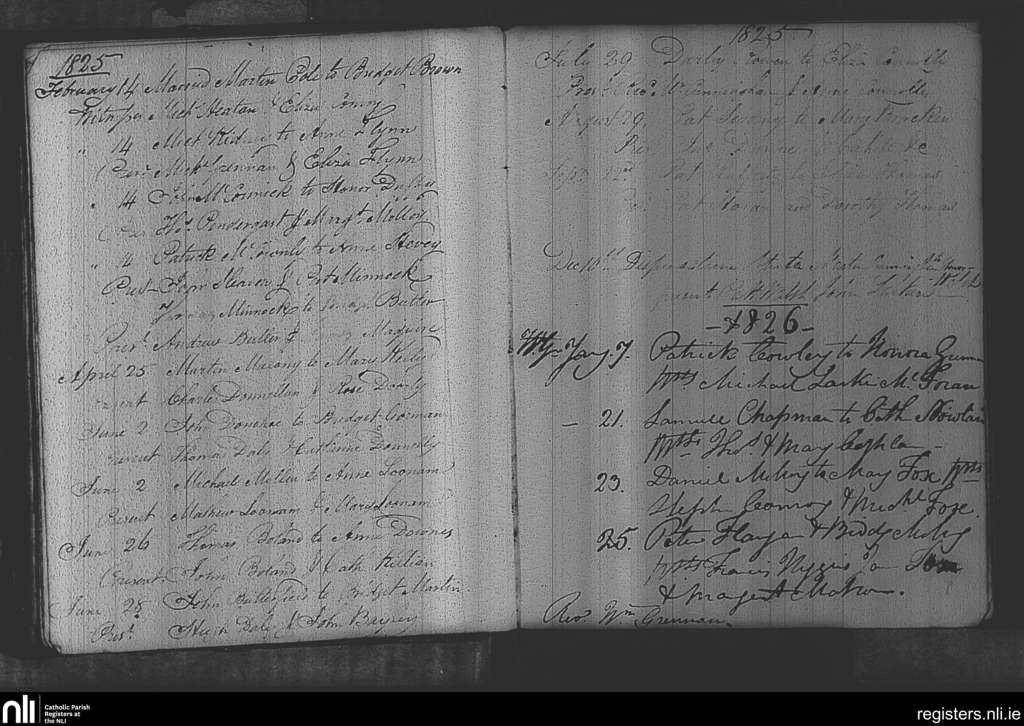 Rahan and Lynally; County of Offaly; Diocese of Meath. Marriages, Feb. 1825 to Jan. 1826