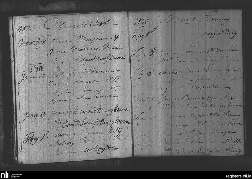 Rahan and Lynally; County of Offaly; Diocese of Meath. Marriages, Nov. 1829 to Feb. 1830