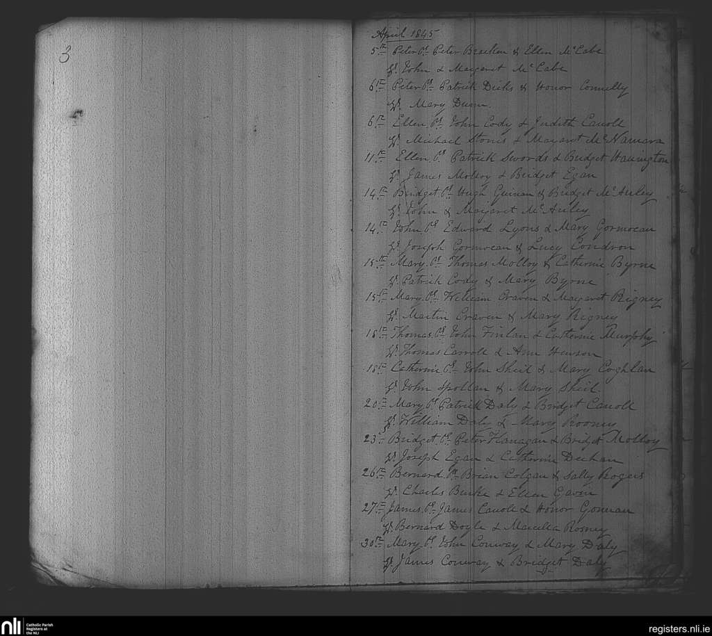 Rahan and Lynally; County of Offaly; Diocese of Meath. Baptisms, Apr. 1845