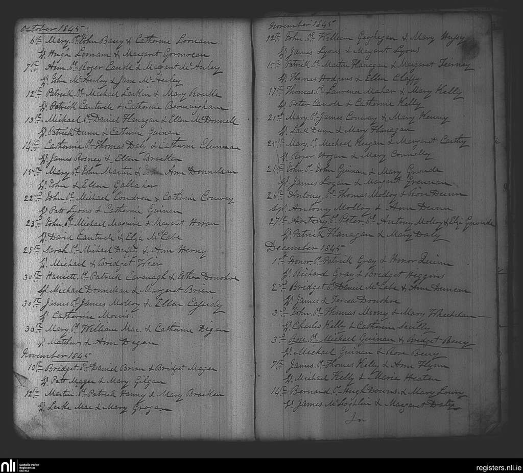 Rahan and Lynally; County of Offaly; Diocese of Meath. Baptisms, Oct. 1845 to Dec. 1845