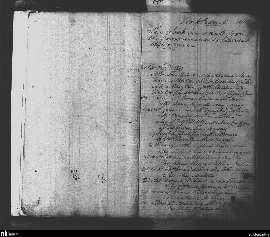 Skryne; County of Meath; Diocese of Meath. Baptisms, Nov. 1841 to Dec. 1841