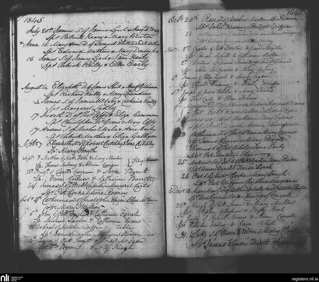Skryne; County of Meath; Diocese of Meath. Baptisms, June 1845 to Dec. 1845