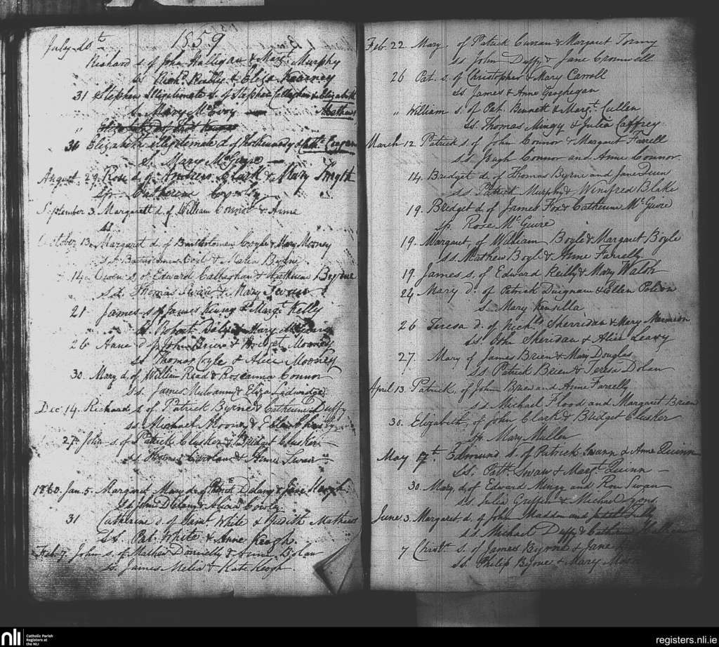 Skryne; County of Meath; Diocese of Meath. Baptisms, July 1859 to June 1860