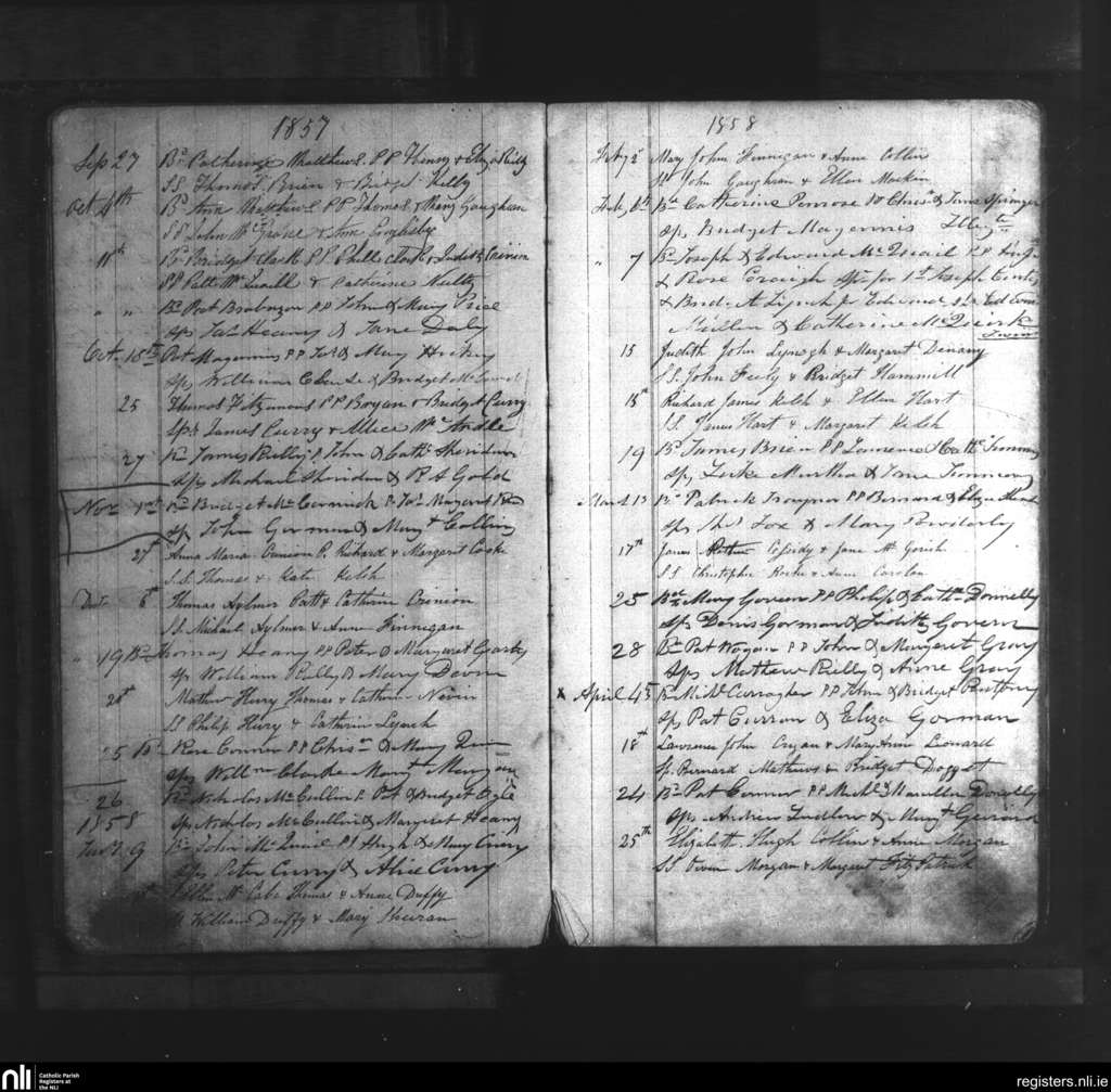 Slane; County of Meath; Diocese of Meath. Baptisms, Sep. 1857 to Apr. 1858