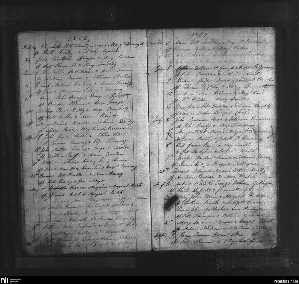 Slane; County of Meath; Diocese of Meath. Baptisms, Feb. 1862 to Sep. 1862