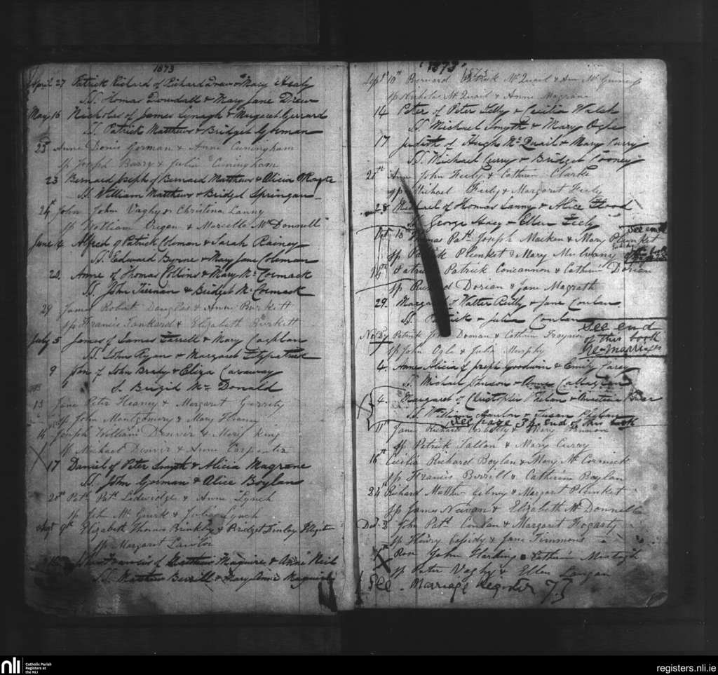Slane; County of Meath; Diocese of Meath. Baptisms, Apr. 1873 to Dec. 1873