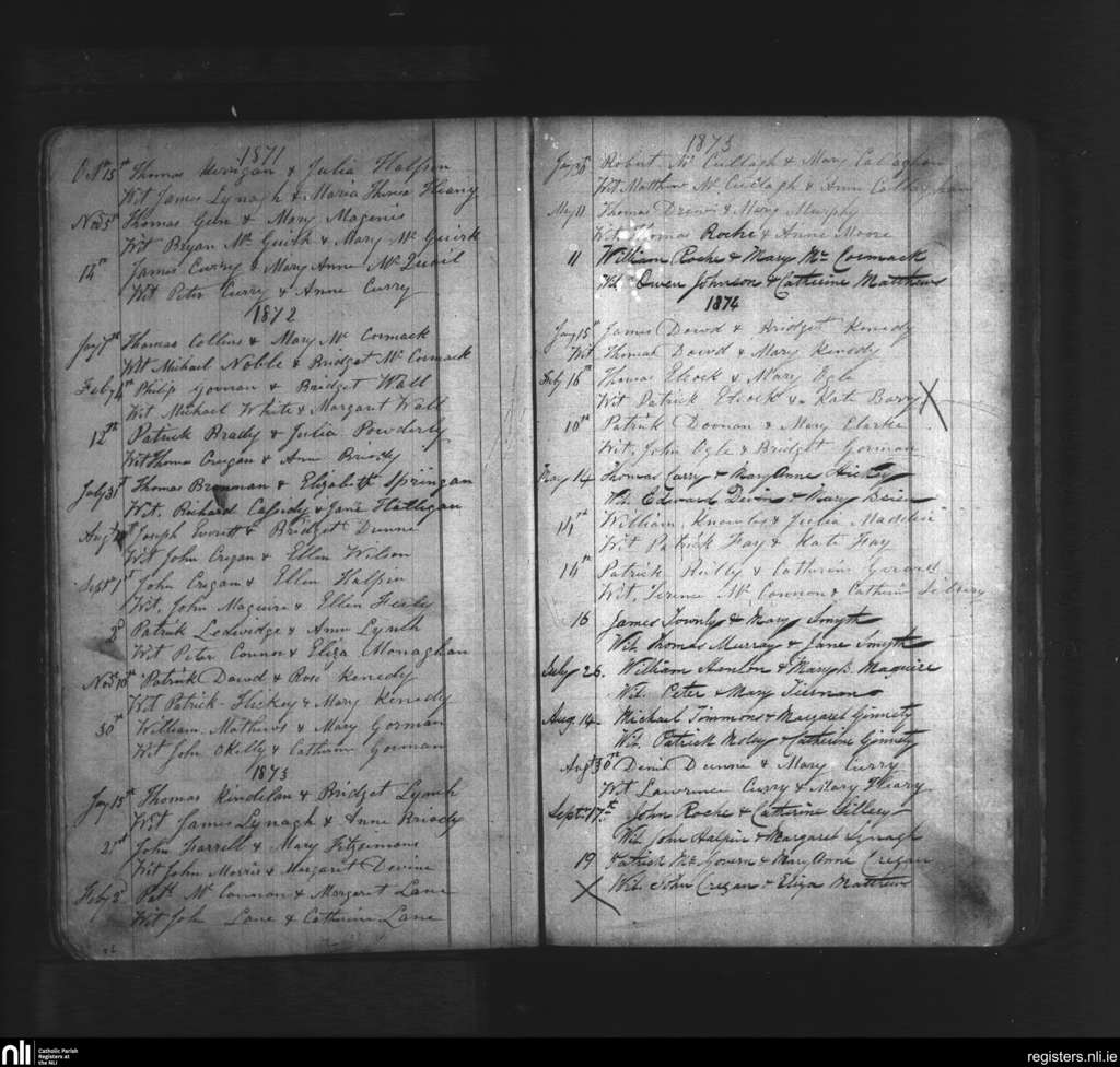 Slane; County of Meath; Diocese of Meath. Marriages, Oct. 1871 to Sep. 1874