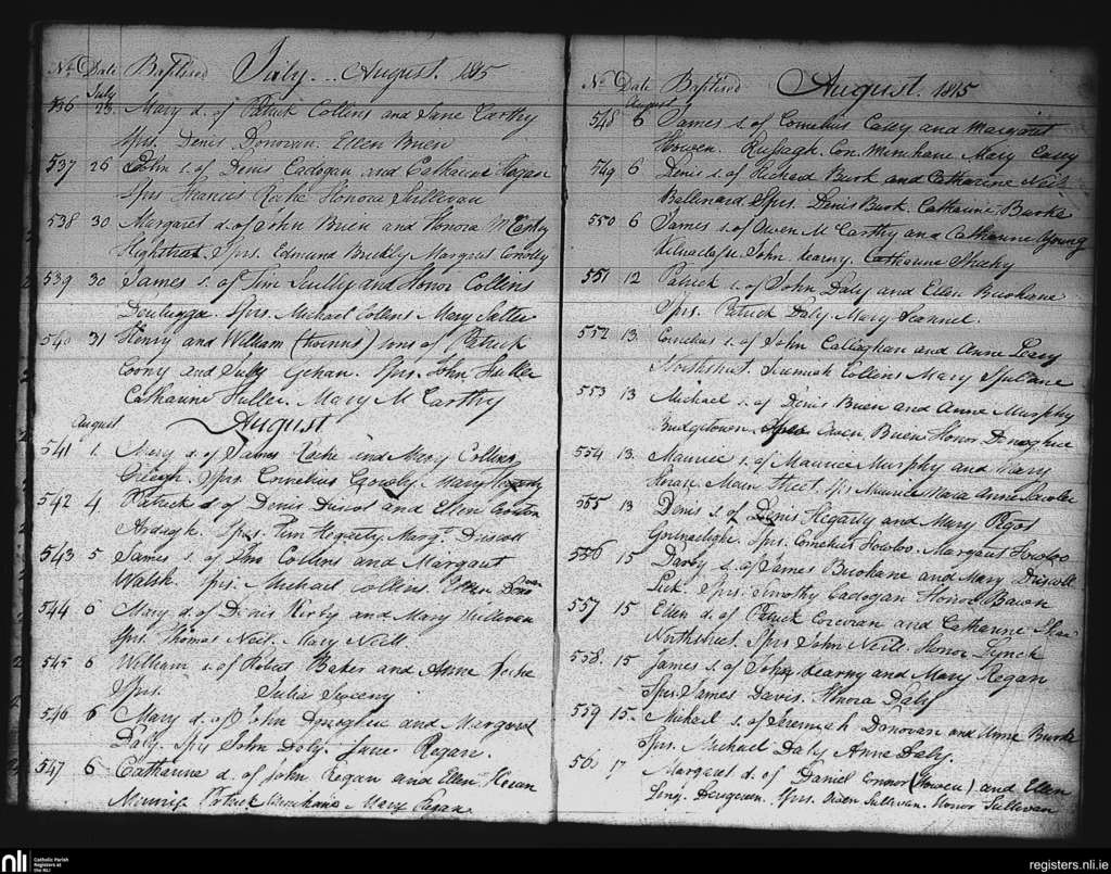 Skibbereen; County of Cork; Diocese of Cork and Ross. Baptisms, July 1815 to Aug. 1815