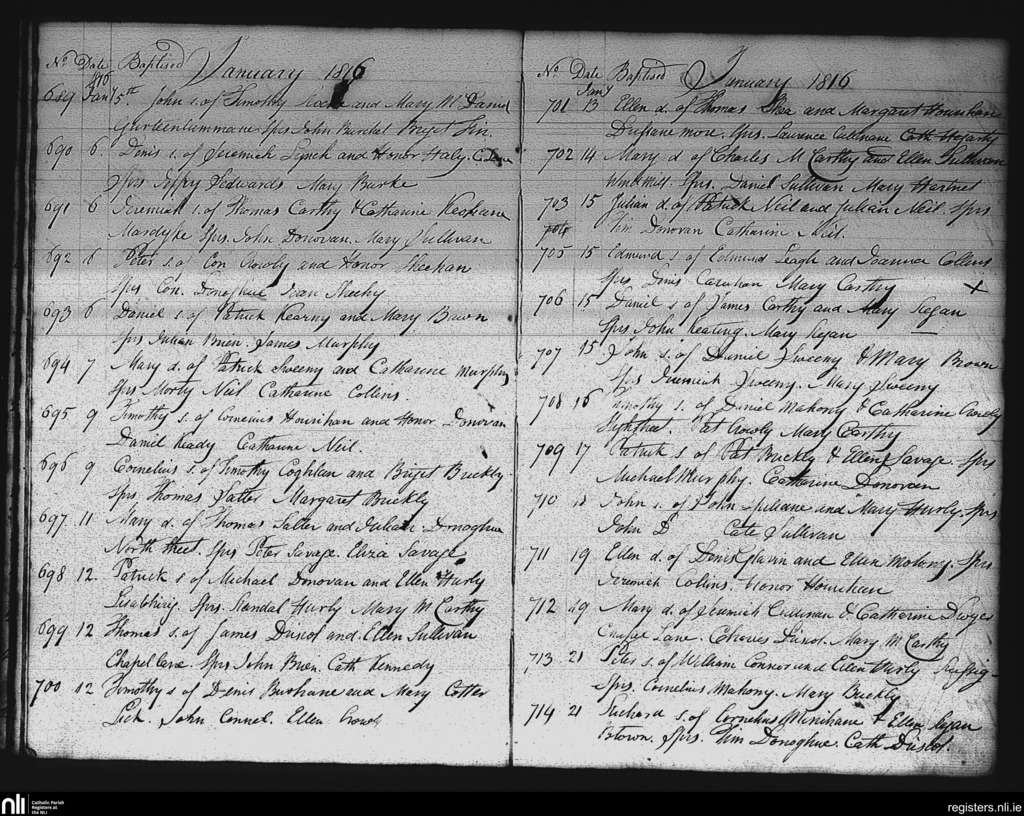 Skibbereen; County of Cork; Diocese of Cork and Ross. Baptisms, Jan. 1816