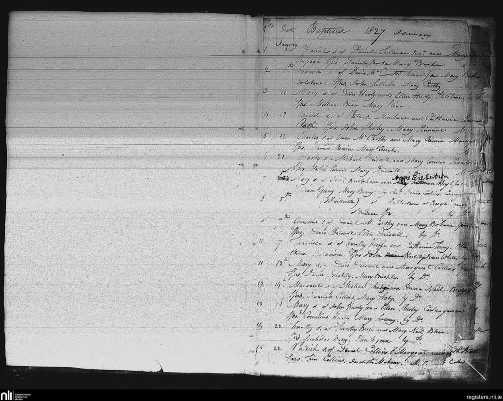 Skibbereen; County of Cork; Diocese of Cork and Ross. Baptisms, Jan. 1827