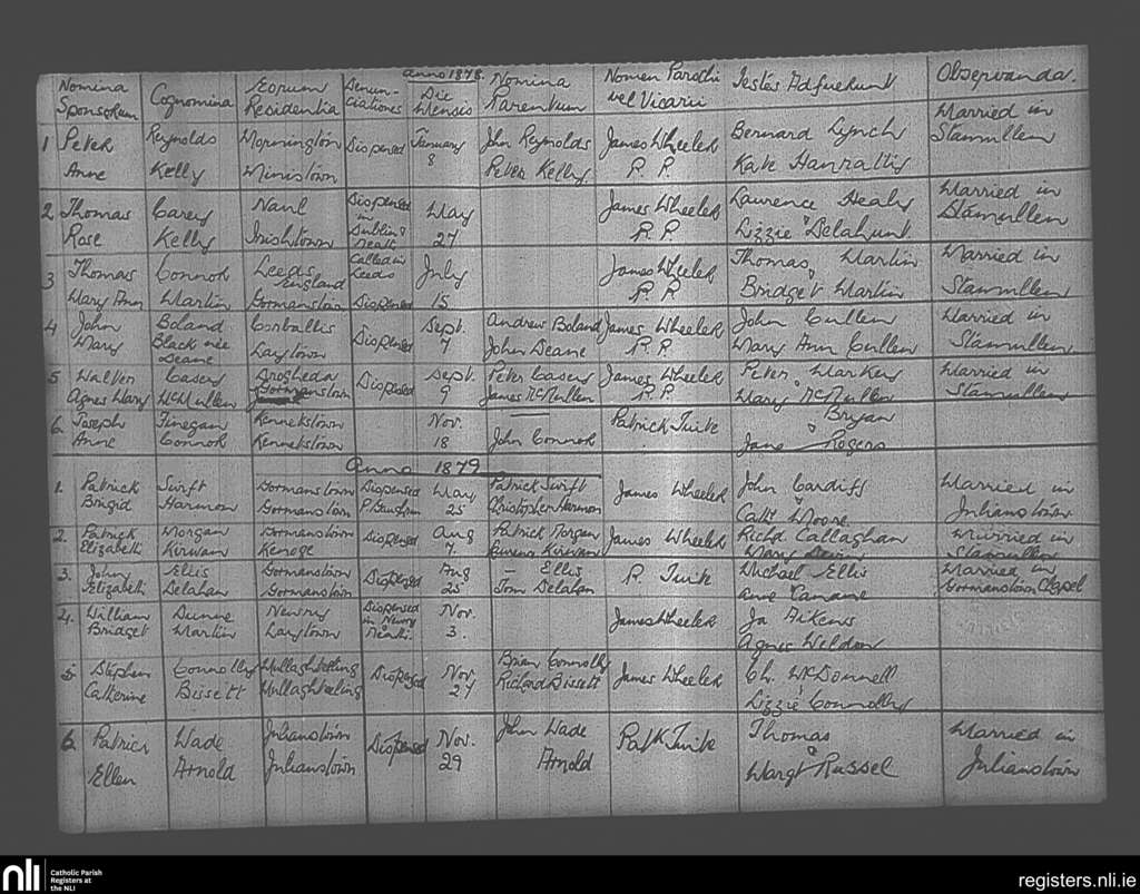 Stamullen; County of Meath; Diocese of Meath. Marriages, Jan. 1878 to Nov. 1879