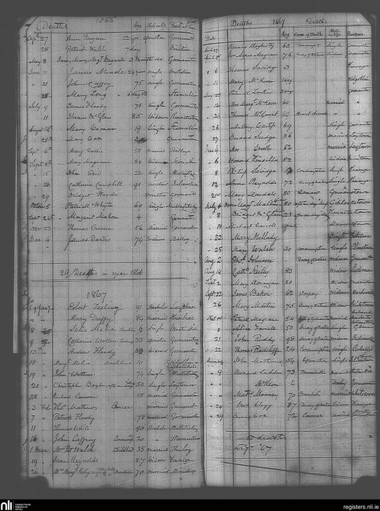 Stamullen; County of Meath; Diocese of Meath. Deaths, Apr. 1866 to Dec. 1867