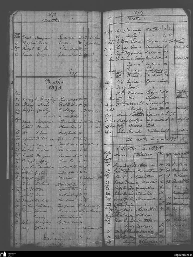 Stamullen; County of Meath; Diocese of Meath. Deaths, Sep. 1872 to Sep. 1875