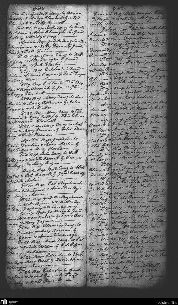 Taghmon; County of Westmeath; Diocese of Meath. Baptisms, Jan. 1783 to Nov. 1783