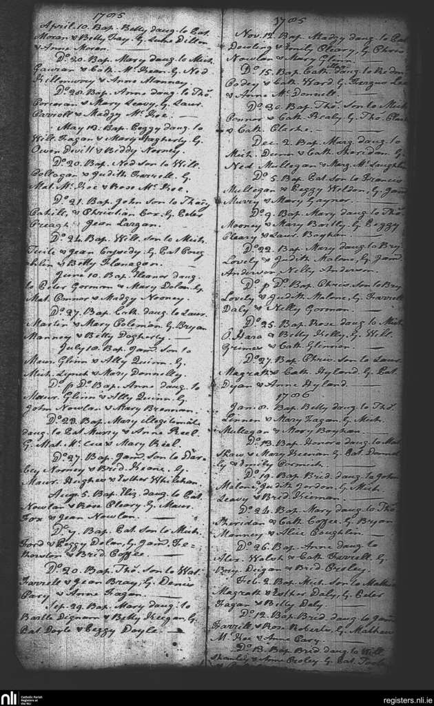 Taghmon; County of Westmeath; Diocese of Meath. Baptisms, Apr. 1785 to Feb. 1786