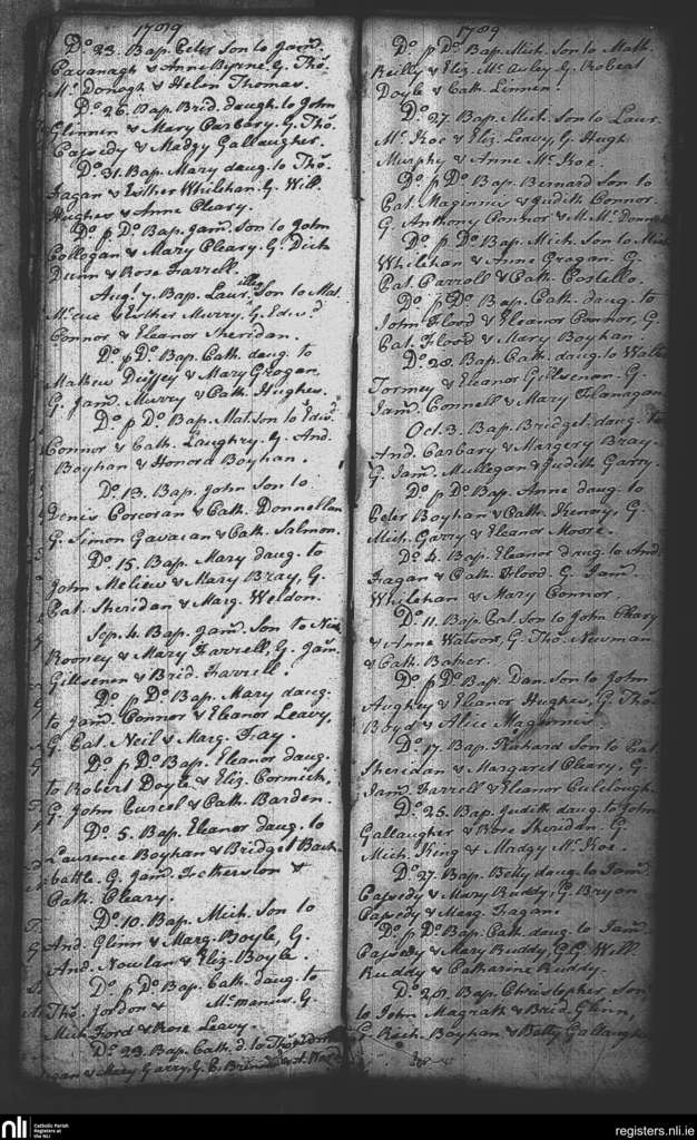 Taghmon; County of Westmeath; Diocese of Meath. Baptisms, July 1789 to Oct. 1789